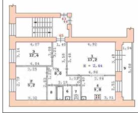 Все комнаты изолированные, правильной геометрической формы. Жилая площадь комнат 12,6 кв.м, 17,2 кв.м, 9,2 кв.м.