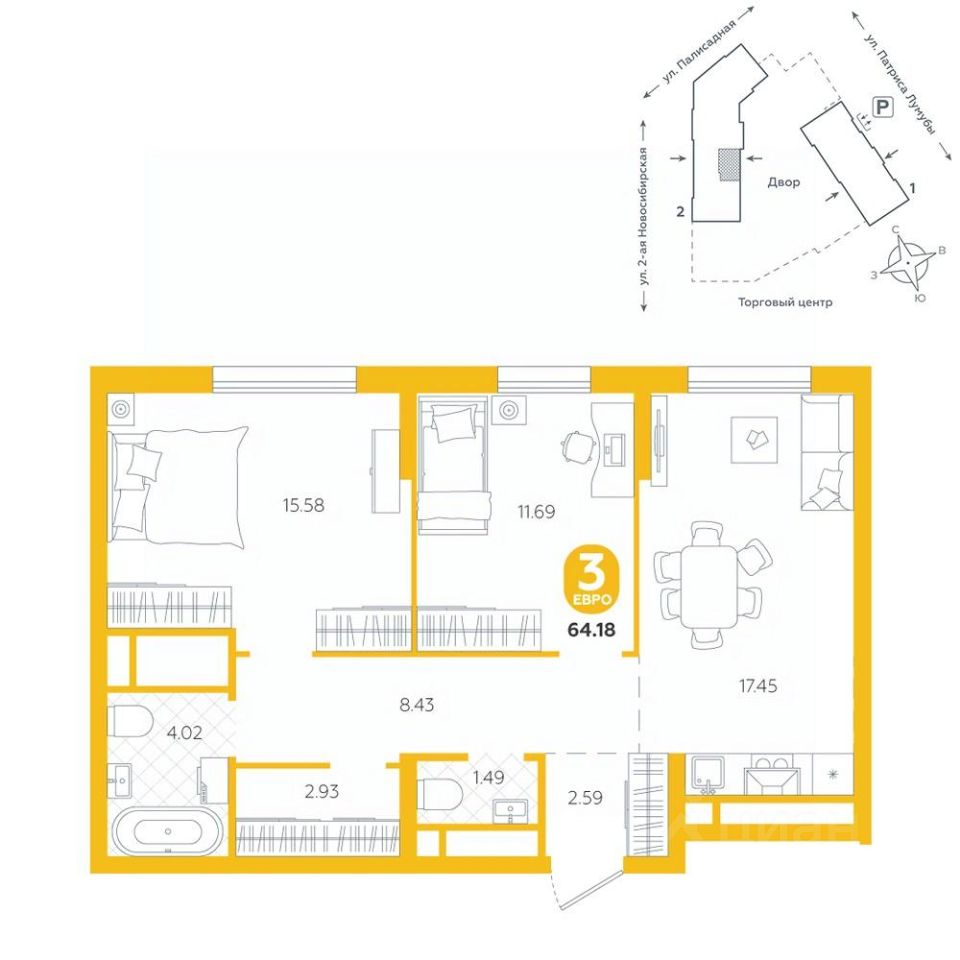 Квартира находится в ЖК "Бодровский" от федерального застройщика "Паритет Девелопмент". Это жилой комплекс комфорт-класса с современной архитектурой, расположенный в Екатеринбурге в районе улиц Патриса Лумумбы и 2-й Новосибирской.