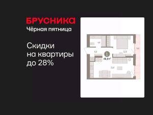 1-комн. квартира с предчистовой отделкой в ЖК "Квартал Траектория" на 4 этаже. Общая площадь: 48.8 кв.м., жилая: 12 кв.м., площадь просторной кухни-столовой: 21 кв.м. Все окна выходят на одну сторону. В квартире один балкон, один совмещенный санузел. Высота потолков 2.82 м.