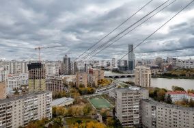 Квaртира видовая, вид на центр города (Екатеринбург-Сити, Макаровский мост и городской пруд).