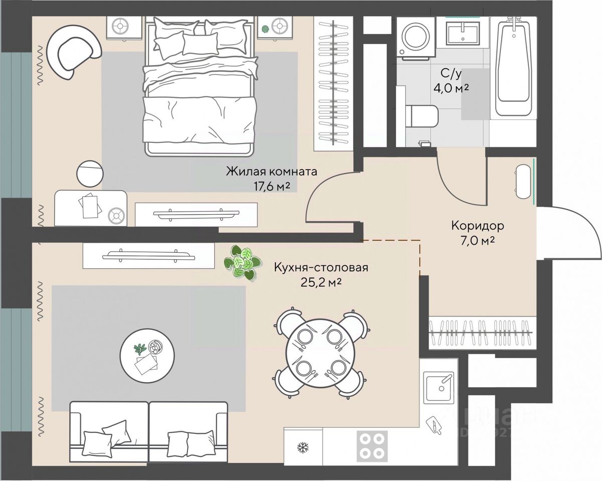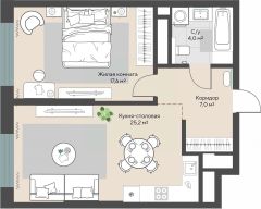Продаётся 1-комнатная квартира в строящемся доме (Дом 1 этап 1.1), срок сдачи: I-кв. 2028, общей площадью 53.8 кв.м., на 4 этаже.