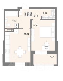 Продается светлая, уютная 1 комнатная квартира суммарной площадью 42,71 м2.