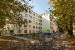 Этаж отделен от лестничной площадки надежной железной дверью, обеспечивая дополнительную безопасность и конфиденциальность. Во дворе организована парковка для жильцов.