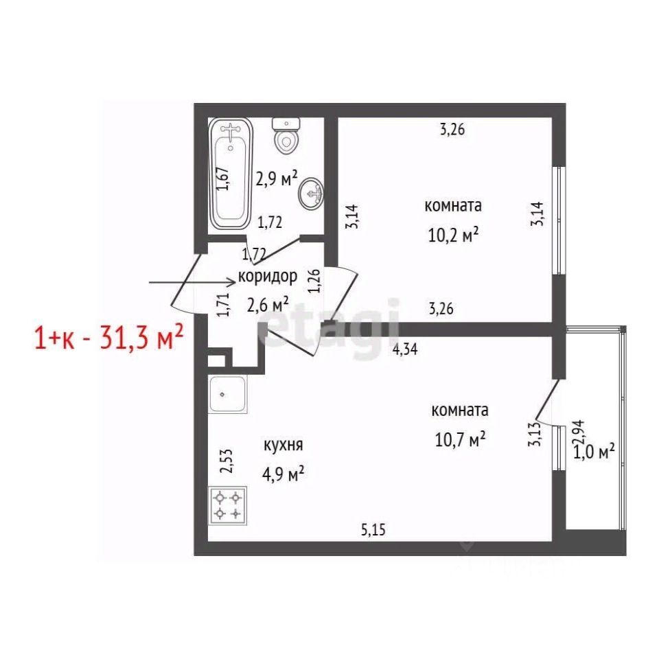 Квартира имеет функционал евро двухкомнатной квартиры , кухня гостиная 15,6 м2 для уютных семейных вечеров и приёма гостей и одна изолированная комната. Так же в перспективе можно организовать две отдельных комнаты.