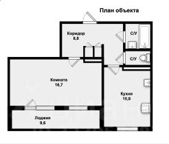 Общая полезная площадь составляет 41,1 кв.м. В комнате (16,7 кв.м.) два окна, поэтому она полна света. Площадь кухни - 10,9 кв.м, что позволяет, помимо кухонных атрибутов (гарнитура, стола и стульев), разместить в ней также удобный раскладной диван для гостей. В просторном коридоре (8,8 кв.м.) можно оборудовать места для хранения вещей или гардеробную, что позволит не занимать шкафами пространство в жилой комнате.
