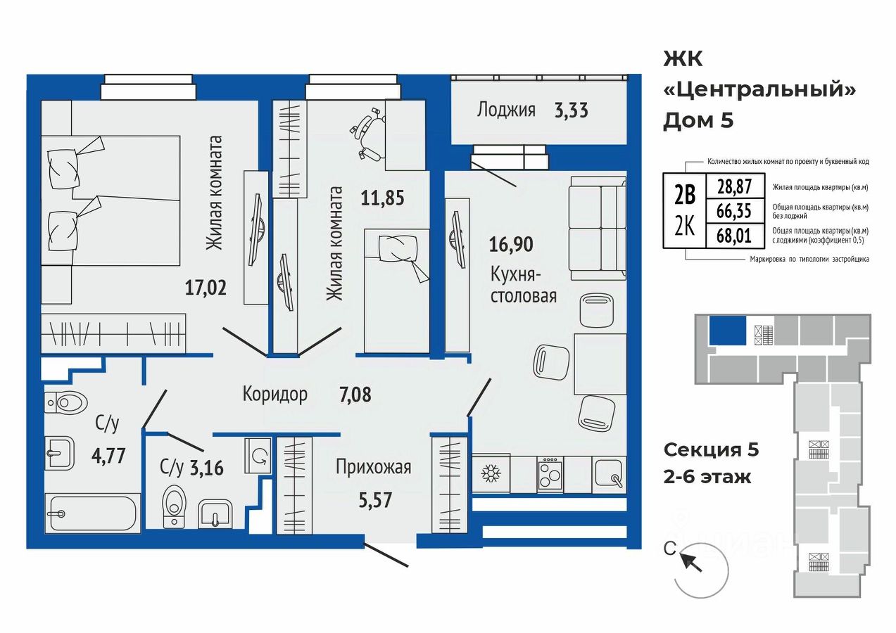 Продаётся 2-комнатная квартира в строящемся доме (Дом 5), срок сдачи: II-кв. 2027, общей площадью 67.7 кв.м., на 3 этаже. Микрорайон "Центральный" - проект комплексной застройки в самом центре Верхней Пышмы на Успенском проспекте в границах улиц Калинина — Кривоусова — Орджоникидзе. Пять многоквартирных домов переменной этажности с обособленными дворами, детскими и спортивными площадками.