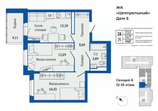 Продаётся 2-комнатная квартира в строящемся доме (Дом 5), срок сдачи: II-кв. 2027, общей площадью 54.97 кв.м., на 14 этаже. Микрорайон "Центральный" - проект комплексной застройки в самом центре Верхней Пышмы на Успенском проспекте в границах улиц Калинина — Кривоусова — Орджоникидзе. Пять многоквартирных домов переменной этажности с обособленными дворами, детскими и спортивными площадками.