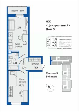 Продаётся 1-комнатная квартира в строящемся доме (Дом 5), срок сдачи: II-кв. 2027, общей площадью 46.76 кв.м., на 6 этаже. Микрорайон "Центральный" - проект комплексной застройки в самом центре Верхней Пышмы на Успенском проспекте в границах улиц Калинина — Кривоусова — Орджоникидзе. Пять многоквартирных домов переменной этажности с обособленными дворами, детскими и спортивными площадками.