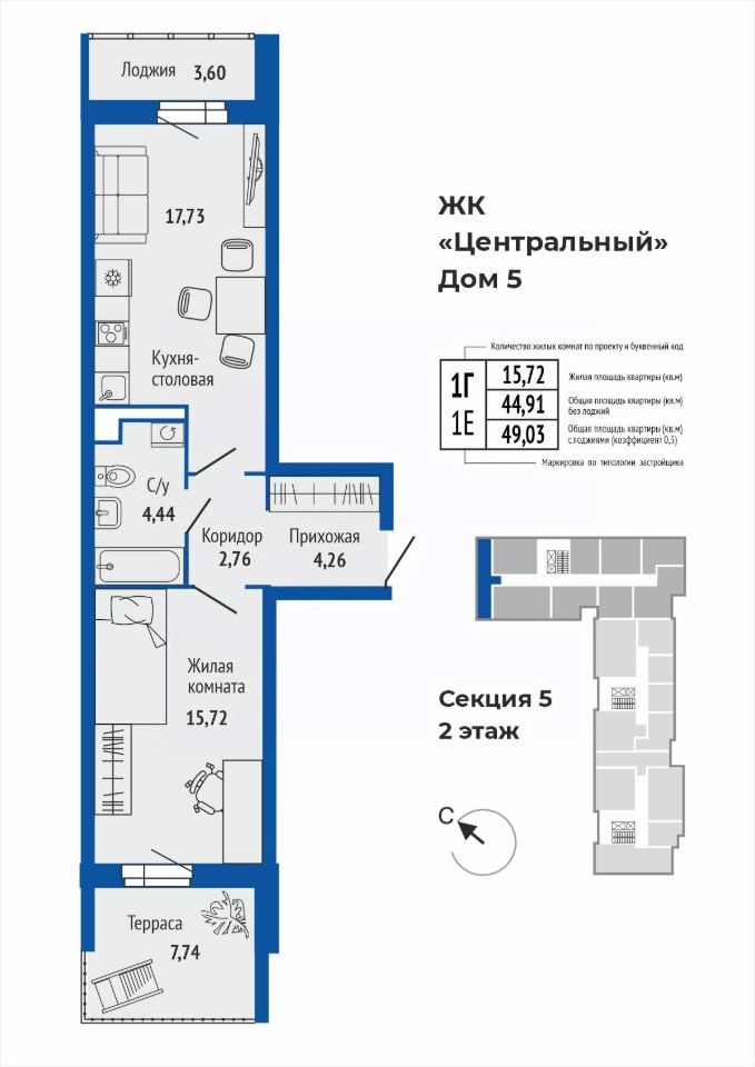 Продаётся 1-комнатная квартира в строящемся доме (Дом 5), срок сдачи: II-кв. 2027, общей площадью 49.08 кв.м., на 2 этаже. Микрорайон "Центральный" - проект комплексной застройки в самом центре Верхней Пышмы на Успенском проспекте в границах улиц Калинина — Кривоусова — Орджоникидзе. Пять многоквартирных домов переменной этажности с обособленными дворами, детскими и спортивными площадками.
