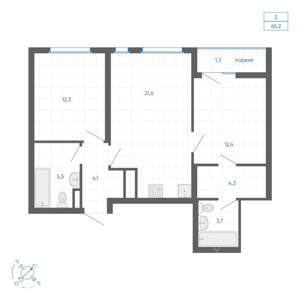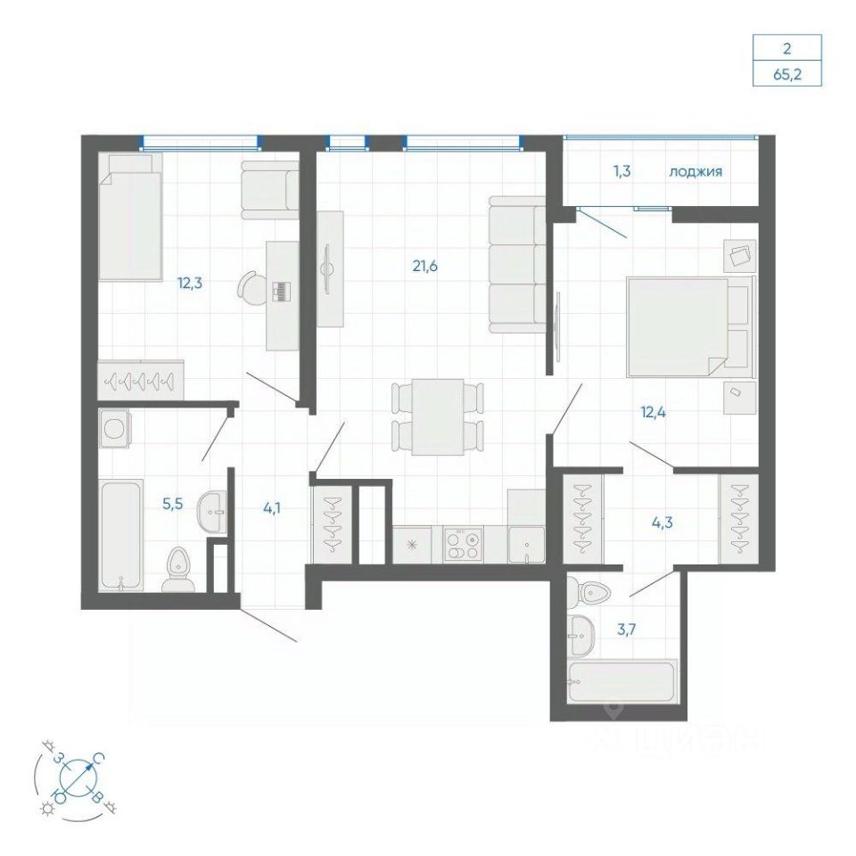 Общая площадь65,2 м²