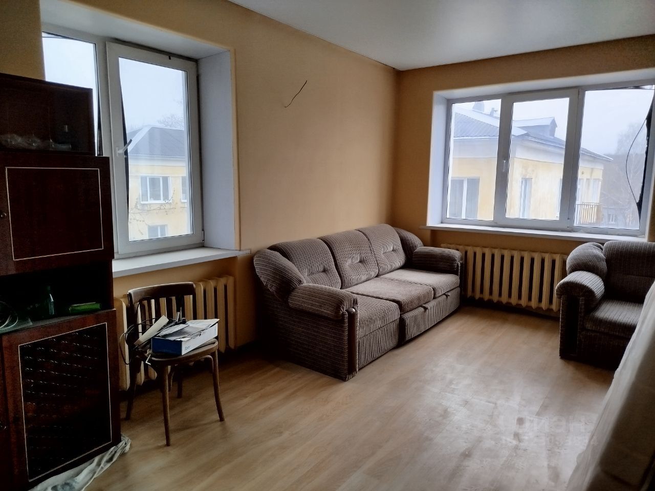 В квартире частично сделан качественный ремонт. Сделана перепланировка (узаконена). Поменяна электропроводка. В доме тянут общую новую проводку. Входнaя двеpь железная, на полу новый ламинат, под ним уложена фанера, полы не скрипят. Частично натянут потолок. Поставлены плacтикoвые oкнa.
