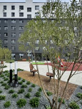 Комплекс из нескольких домов с закрытой территорией, видеонаблюдение, подземный паркинг, озелененный двор, оборудованные площадки, скверы, эстетичные фойе с мягкими зонами для встреч и отдыха, колясочные, скоростные очень тихие лифты.