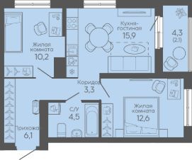 Общая площадь54,7 м²