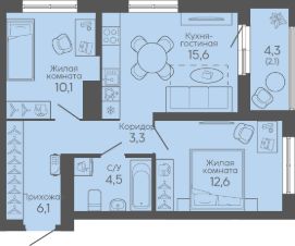 Общая площадь54,3 м²