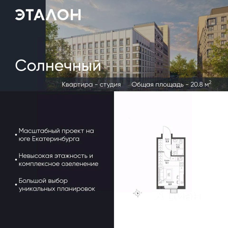 Продается квартира 283, по адресу Свердловская область, г. Екатеринбург, ул. Чемпионов, корпус Солнечный, блок 11.1 в Солнечный на 8 этаже, с площадью 20.8 м2.