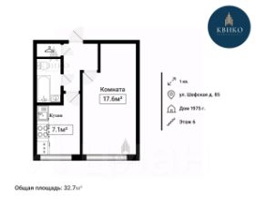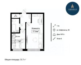 - кухня 7,1 м2, комната - 17,6 м2