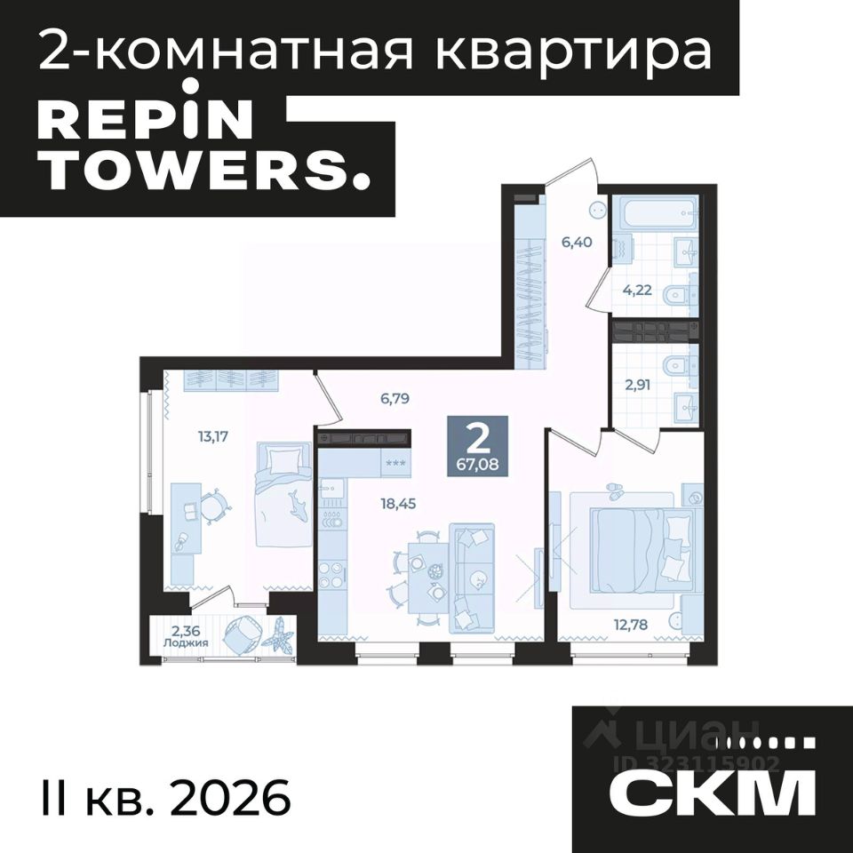 Реализация строящегося объекта осуществляется от застройщика по договору участия в долевом строительстве в соответствии с ФЗ-214 "Об участии в долевом строительстве", застройщик ООО "Специализированный Застройщик Репина". Варианты оплаты: ипотека, индивидуальные условия рассрочки, trade in, материнский и жилищные сертификаты, подробности в отделе продаж.