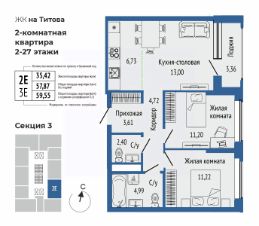 Продаётся 3-комнатная квартира в строящемся доме (Секции 4,5,7), срок сдачи: I-кв. 2027, общей площадью 59.3 кв.м., на 14 этаже. Новый жилой комплекс "Квартал на Титова" от застройщика "Правобережный" расположен по адресу: г. Екатеринбург, улица Титова.