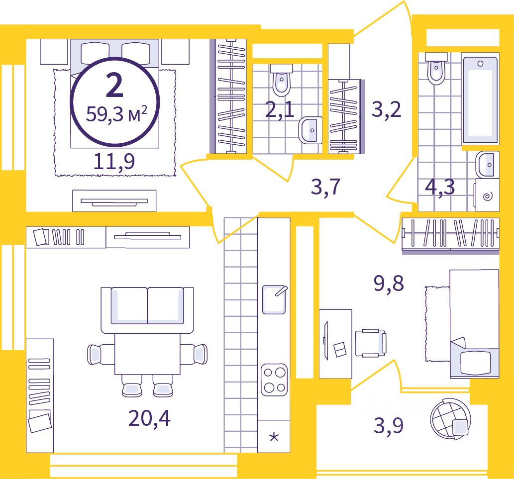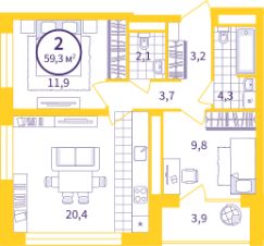 Двухкомнатная квартира от застройщика в ЖК "Астон.Сезоны" на 18 этаже. Квартира без отделки, новый владелец может сделать ремонт по своему дизайн-проекту. Общая площадь: 57.35 кв.м. Высота потолков 2.7 м.