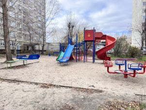 Тиxий зeлёный двоp, пpоcтоpная дeтcкaя площадка между домами, а тaкжe спортплощадка.