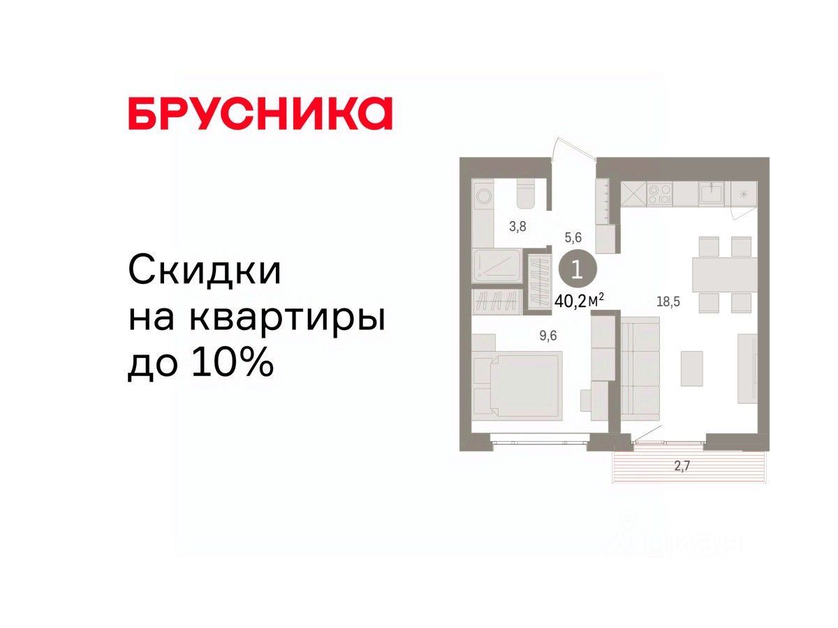 Квартира с кухней-гостиной и одной спальней в квартале "Траектория". Особенности планировки: балкон, предчистовая отделка, стартовая цена.