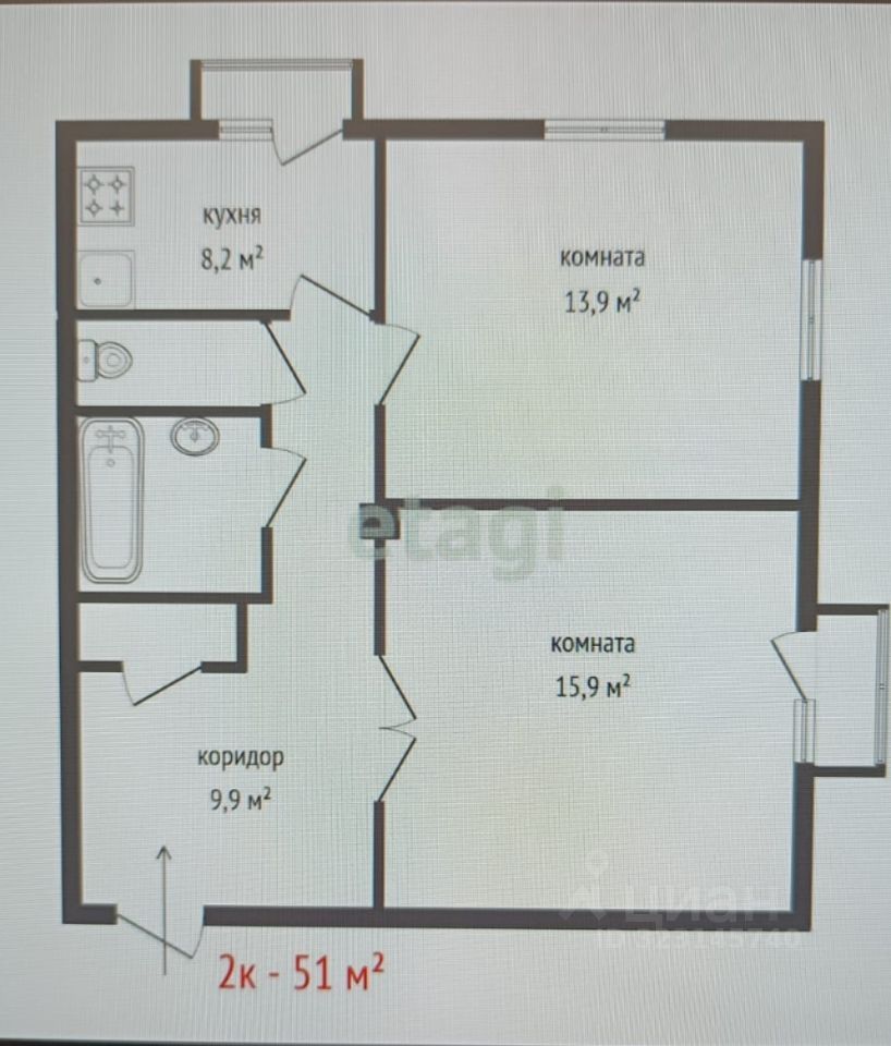 2 застекленных балкона (плюсом к основной площади квартиры).