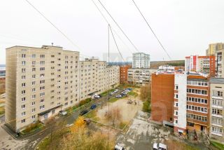 на 9м этаже в 10ти этажном доме, напротив окон нет загораживающих деревьев и не будет стройки.