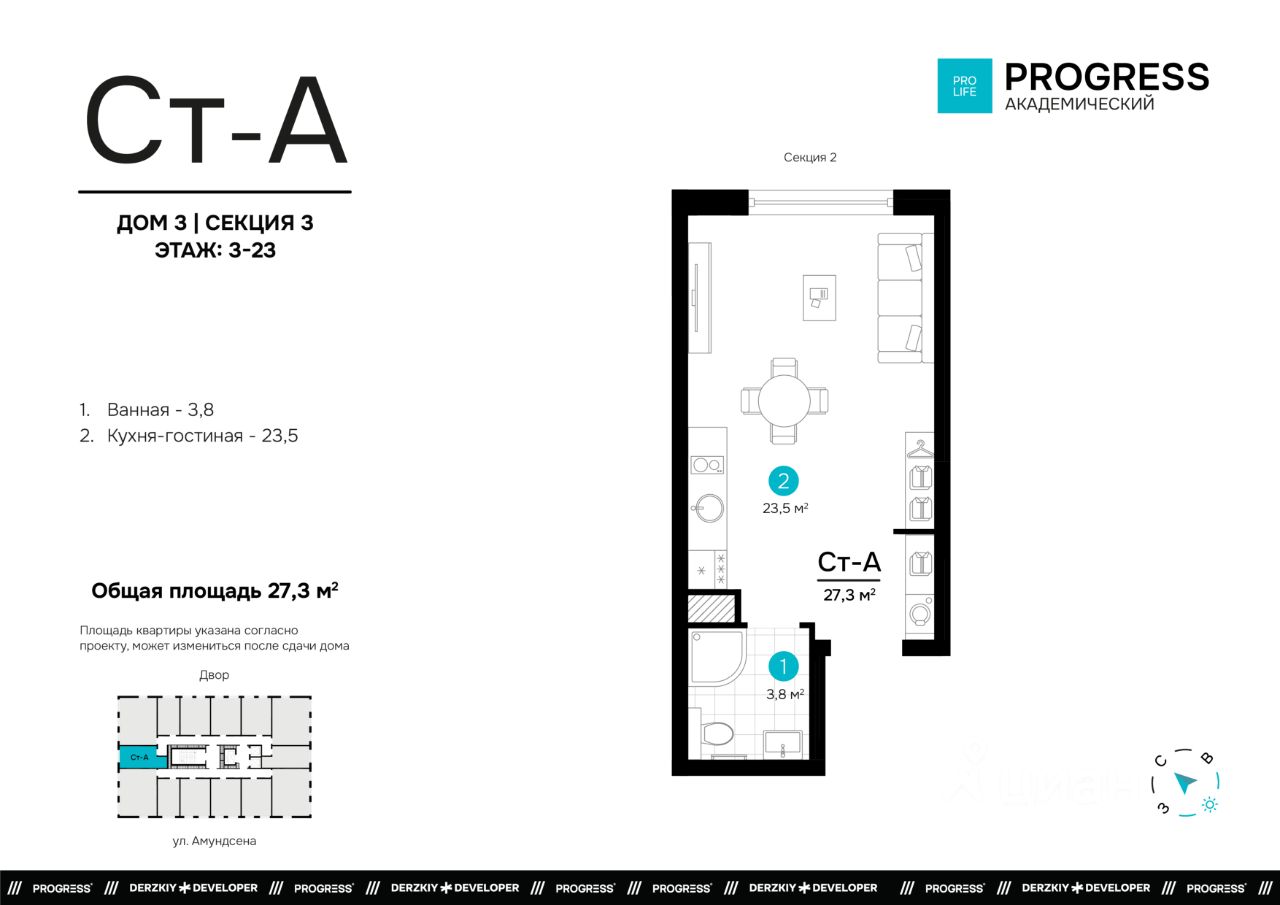 О компании: "Прогресс" — девелопер федерального уровня. Создаём современный стиль жизни с 2012 года. Совершенствуем культуру нашего общества. Предвосхищаем ваши ожидания. "Прогресс" - группа компаний полного цикла. Мы проектируем, строим и обслуживаем свои жилые комплексы. Входим в топ - 10 застройщиков по потребительским качествам ЖК по версии "Единый ресурс застройщиков". Мы - обладатель федеральных и европейских наград в сфере недвижимости: Urban Awards, European Property Awards, "Надёжный застройщик России" и др. Новый проект от создателей жилого квартала "Amundsen" "Progress Академический" - это место, где безопасно и уютно. Вы прочувствуете настоящую жизнь в режиме "здесь и сейчас". Удобная локация делает этот проект максимально привлекательным для тех, кто устал от суеты и ограниченных пространств. Безопасный благоустроенный двор, умные планировки и зонирование территории все это позволит почувствовать новый уровень комфорта. Соседство с лесным массивом, улучшает качество воздуха и создает уникальное экологически чистое окружение. Умные планировки. При проектировании дома наши архитекторы закладывают систему SMART- планировок: - Только разумное распределение полезной площади, которое отвечает реальным потребностям человека. Жители экономят деньги на протяжение всей жизни, ведь используется каждый уголок квартиры. - Несущие стены вынесены по периметру квартиры. Это дает возможность осуществлять перепланировку и реализовывать свои архитектурные идеи. - Все комнаты правильной формы, что упрощает расстановку мебели. Благоустроенные дворы. Наполнение двора детально продумано, с учетом потребностей каждого жителя. Детские площадки для разных возрастов, зоны отдыха, зеленые аллеи и пешеходные дорожки. В центре двора предусмотрен амфитеатр для общих встреч жителей и больших мероприятий. Собственная сервисная компания 24/7 поддерживает чистоту территории жилого квартала. Безопасность. Комплексная безопасность является одним из главных преимуществ. Проектом предусмотрено: закрытая придомовая территория без машин и круглосуточное видеонаблюдение без слепых зон, доступ через специальное мобильное приложение. Удобная локация. Инфраструктура обеспечит комфортную жизнь каждому. Это пространство с уникальной образовательной, спортивной и культурной инфраструктурой, необходимой для развития всесторонней личности. Парки и прогулочные зоны Продуктовые магазины "Пятерочка" и "Магнит" Тренажерные залы и фитнес-клубы 4 школы 9 детских садов Остановки общественного транспорта в 10 минутах ходьбы Технические преимущества: - система очистки водопроводной воды до питьевой - система телеметрии - установлены входные двери с тепло-шумоизоляцией - радиаторы отопления - наружные стены с встроенной шумоизоляцией - фасадная дренажная система позволяет избежать затопления фасадов и образования грязевых луж. Способы приобретения квартиры: • С помощью материнского капитала • В ипотеку Забронируйте квартиру по номеру телефона офиса продаж.