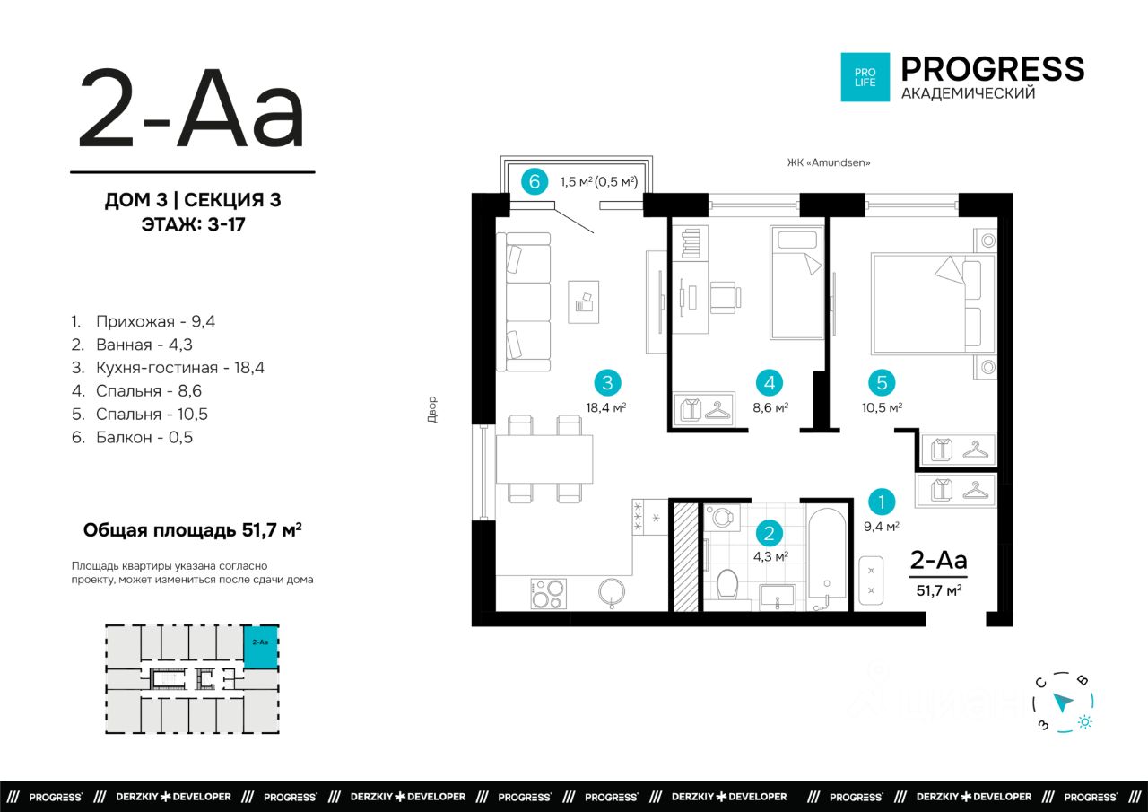 О компании: "Прогресс" — девелопер федерального уровня. Создаём современный стиль жизни с 2012 года. Совершенствуем культуру нашего общества. Предвосхищаем ваши ожидания. "Прогресс" - группа компаний полного цикла. Мы проектируем, строим и обслуживаем свои жилые комплексы. Входим в топ - 10 застройщиков по потребительским качествам ЖК по версии "Единый ресурс застройщиков". Мы - обладатель федеральных и европейских наград в сфере недвижимости: Urban Awards, European Property Awards, "Надёжный застройщик России" и др. Новый проект от создателей жилого квартала "Amundsen" "Progress Академический" - это место, где безопасно и уютно. Вы прочувствуете настоящую жизнь в режиме "здесь и сейчас". Удобная локация делает этот проект максимально привлекательным для тех, кто устал от суеты и ограниченных пространств. Безопасный благоустроенный двор, умные планировки и зонирование территории все это позволит почувствовать новый уровень комфорта. Соседство с лесным массивом, улучшает качество воздуха и создает уникальное экологически чистое окружение. Умные планировки. При проектировании дома наши архитекторы закладывают систему SMART- планировок: - Только разумное распределение полезной площади, которое отвечает реальным потребностям человека. Жители экономят деньги на протяжение всей жизни, ведь используется каждый уголок квартиры. - Несущие стены вынесены по периметру квартиры. Это дает возможность осуществлять перепланировку и реализовывать свои архитектурные идеи. - Все комнаты правильной формы, что упрощает расстановку мебели. Благоустроенные дворы. Наполнение двора детально продумано, с учетом потребностей каждого жителя. Детские площадки для разных возрастов, зоны отдыха, зеленые аллеи и пешеходные дорожки. В центре двора предусмотрен амфитеатр для общих встреч жителей и больших мероприятий. Собственная сервисная компания 24/7 поддерживает чистоту территории жилого квартала. Безопасность. Комплексная безопасность является одним из главных преимуществ. Проектом предусмотрено: закрытая придомовая территория без машин и круглосуточное видеонаблюдение без слепых зон, доступ через специальное мобильное приложение. Удобная локация. Инфраструктура обеспечит комфортную жизнь каждому. Это пространство с уникальной образовательной, спортивной и культурной инфраструктурой, необходимой для развития всесторонней личности. Парки и прогулочные зоны Продуктовые магазины "Пятерочка" и "Магнит" Тренажерные залы и фитнес-клубы 4 школы 9 детских садов Остановки общественного транспорта в 10 минутах ходьбы Технические преимущества: - система очистки водопроводной воды до питьевой - система телеметрии - установлены входные двери с тепло-шумоизоляцией - радиаторы отопления - наружные стены с встроенной шумоизоляцией - фасадная дренажная система позволяет избежать затопления фасадов и образования грязевых луж. Способы приобретения квартиры: • С помощью материнского капитала • В ипотеку Забронируйте квартиру по номеру телефона офиса продаж.