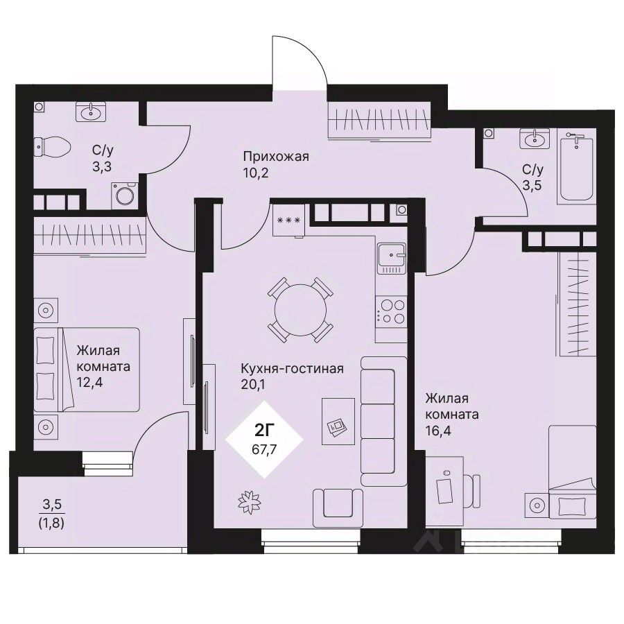 Общая площадь67,65 м²