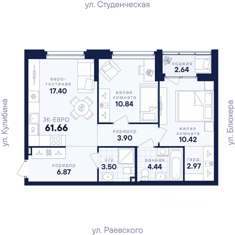 Общая площадь61,66 м²