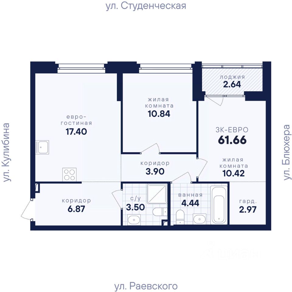Общая площадь61,66 м²