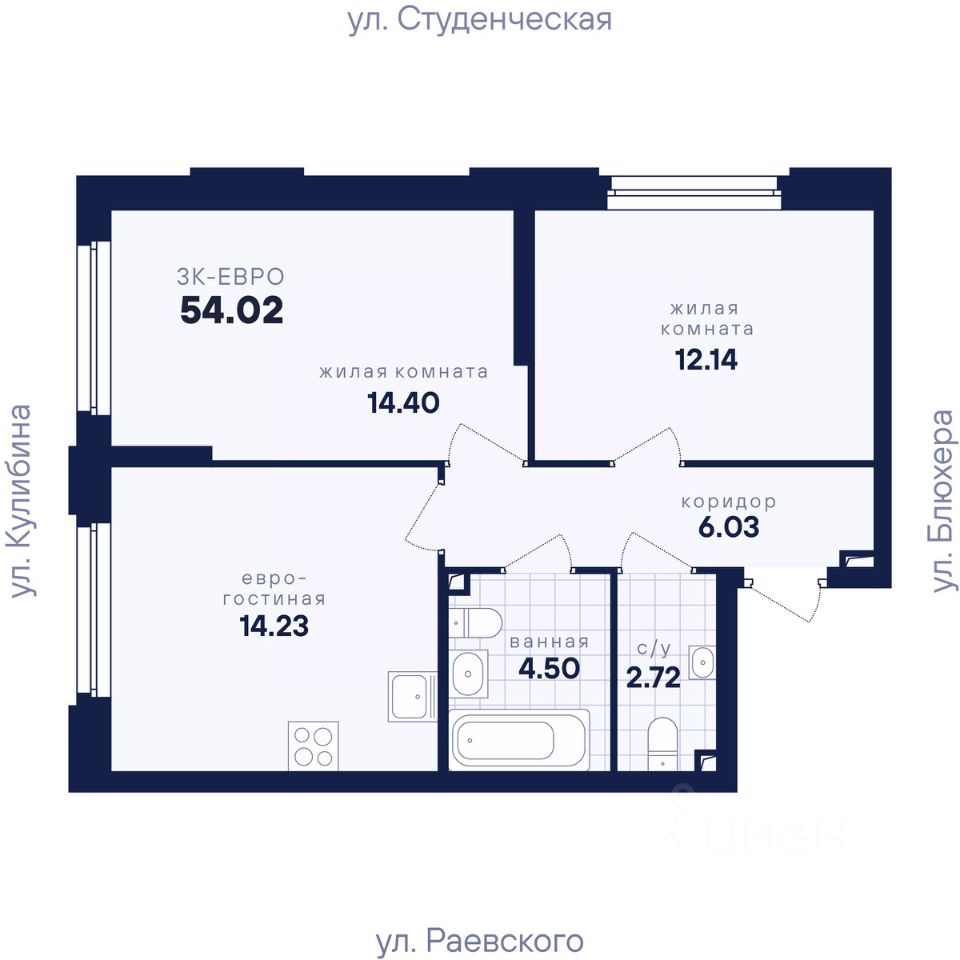Общая площадь54,02 м²
