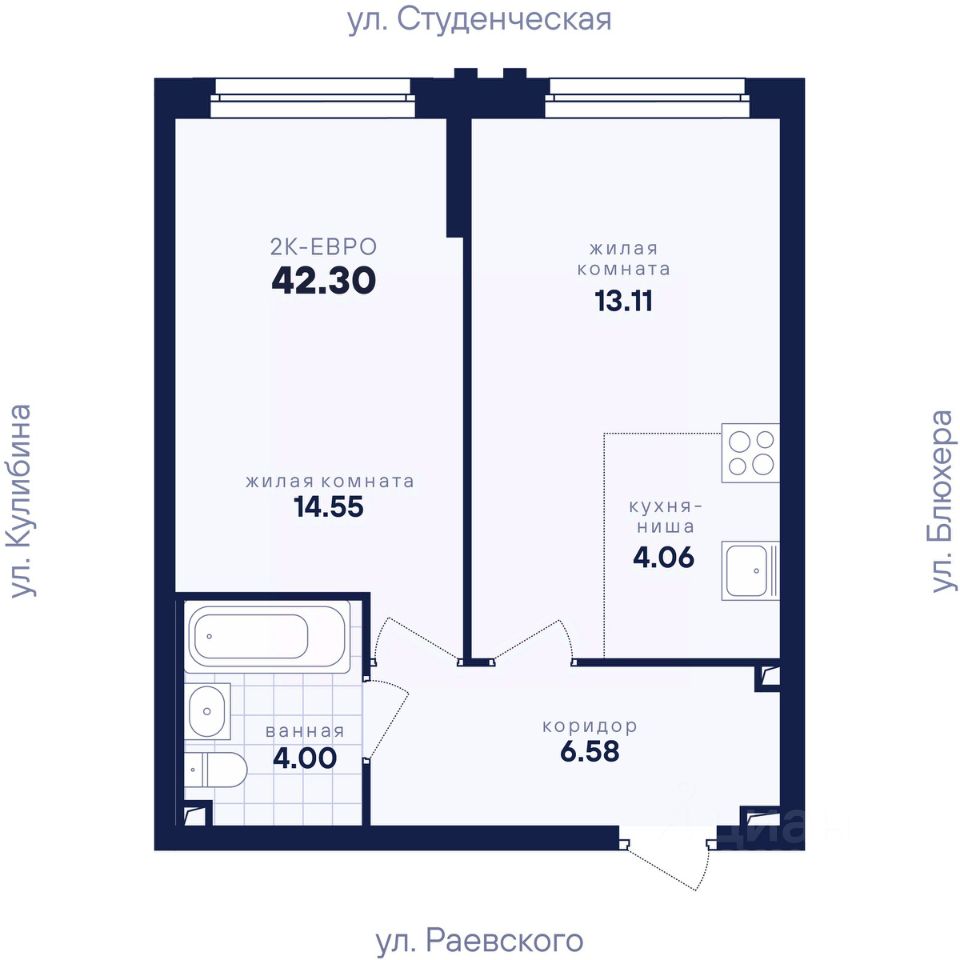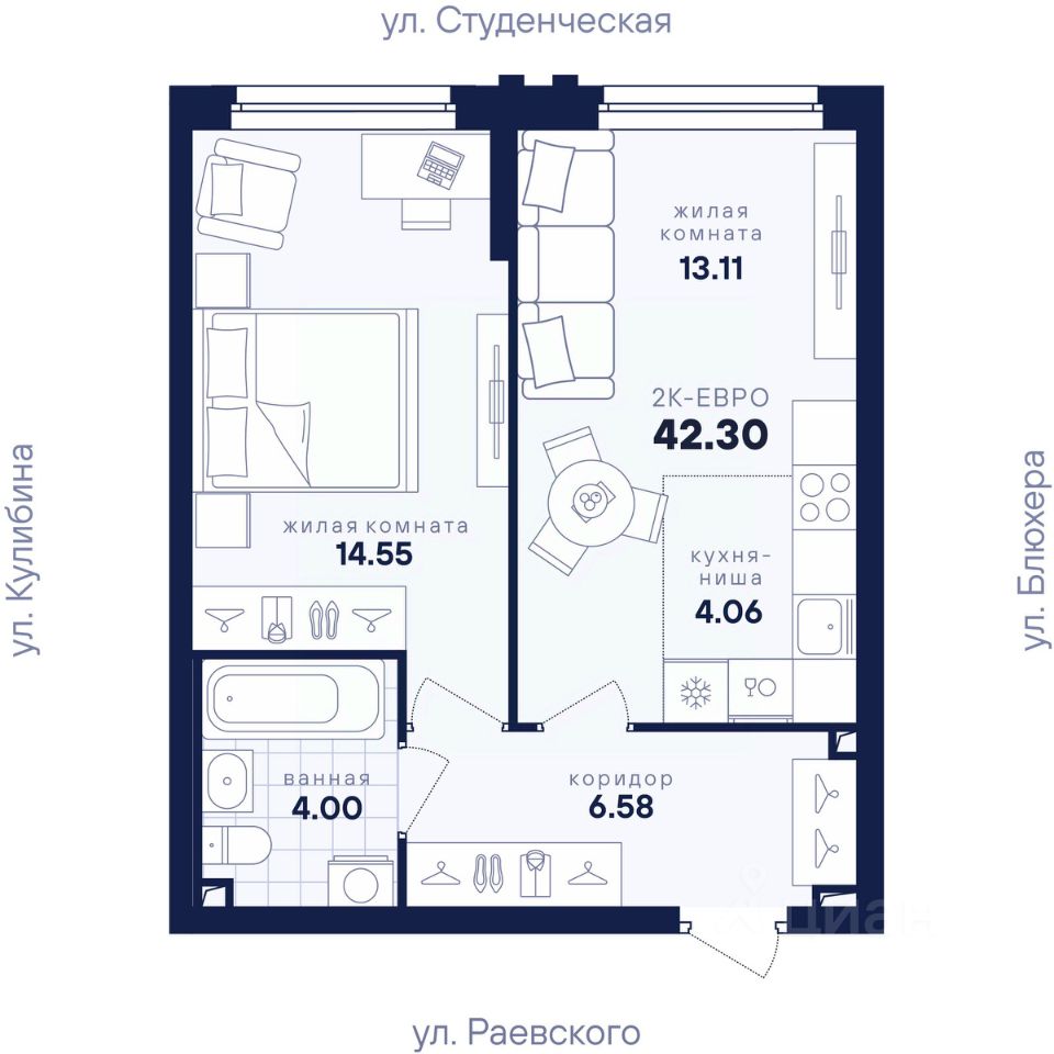 Общая площадь42,3 м²