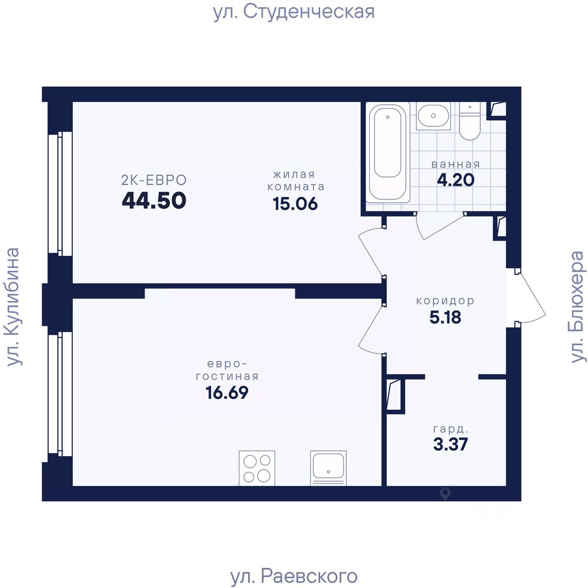 Общая площадь44,5 м²