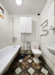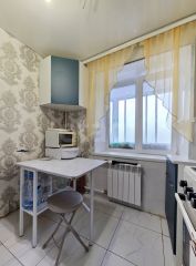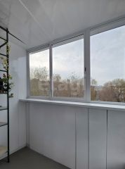 В комнате уложен линолеум, а в зонах повышенной проходимости — коридоре и кухне — использована практичная кафельная плитка. Установлены новые радиаторы отопления. Дополнительным преимуществом является просторный застекленный балкон с современными окнами ПВХ, выполняющий роль комфортной зоны для отдыха или местом для хранения вещей. Ванная комната соединена с санузлом.