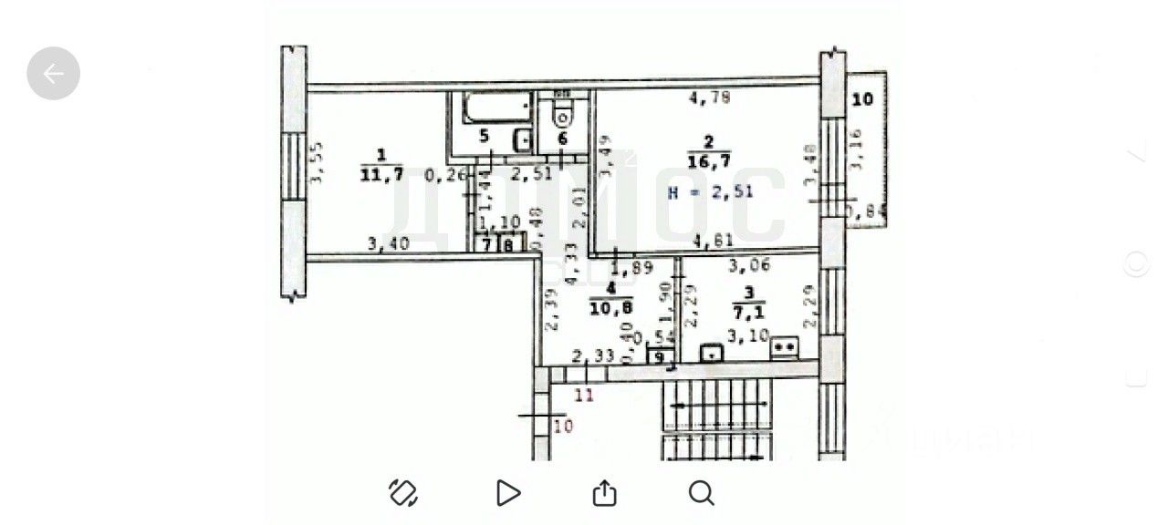 50,7 м²