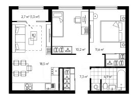 В продаже 2-к квартира 54 м2