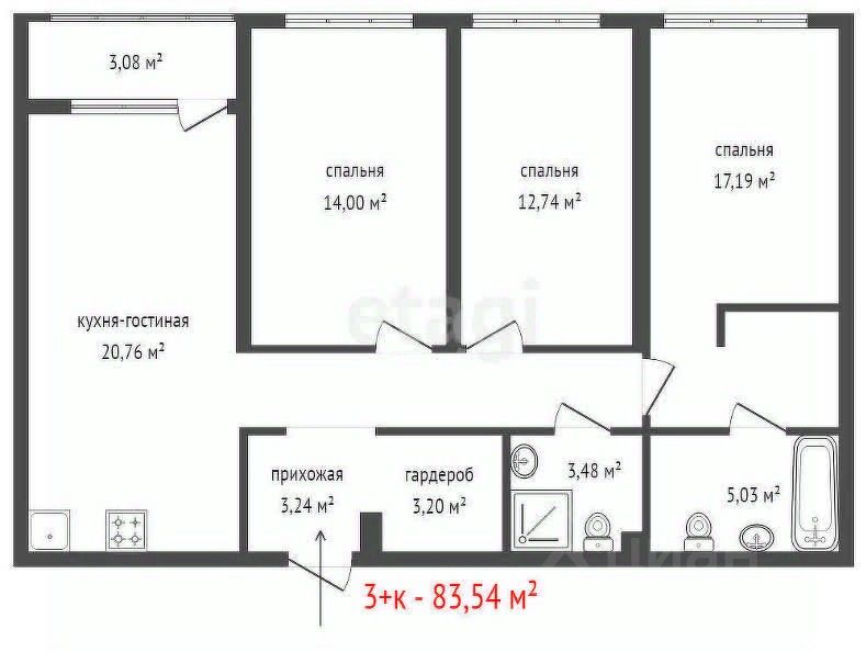 3 х комнатная квартира в строящемся доме, ЖК Река.