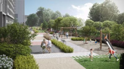 Двор отгорожен от дорог и уличного шума самим домом — это будет тихий уголок между домом и Исетью, со взрослыми деревьями, кустарниками, газонами и местами для игр и отдыха. И взрослые, и дети найдут здесь место по душе. Из двора к реке ведёт собственная калитка с доступом по ключу жителя.