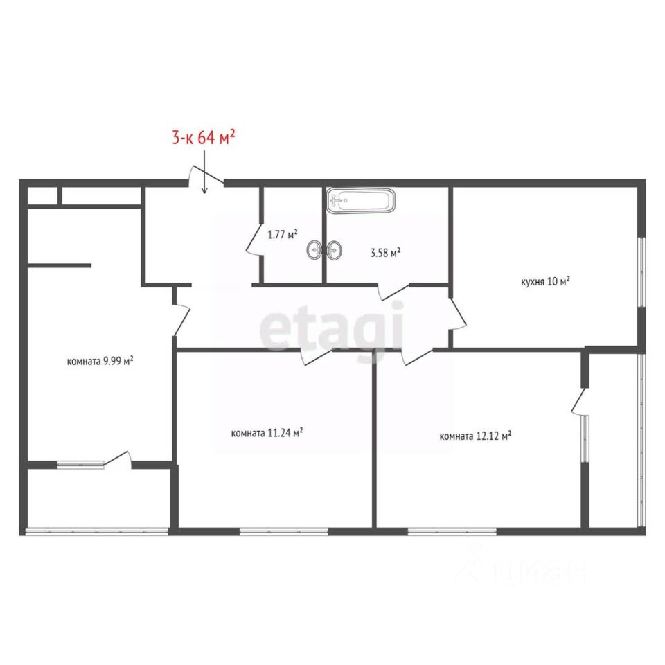 Продается просторная светлая трехкомнатная квартира по улице Шолохова 2/2 на третьем этаже площадью 64 кв.м. , кухня 10 кв.м. в ЖК Шолохов.