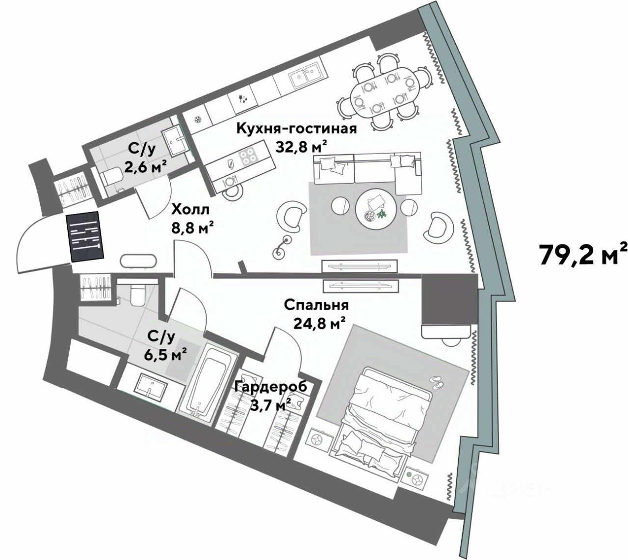 Продаются 2-комнатные апартаменты в сданном доме (1 корпус), срок сдачи: III-кв. 2016, общей площадью 79.2 кв.м., на 16 этаже. Расположение, транспортная доступность