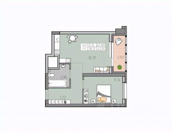 Продаётся 1-комнатная квартира в сданном доме (Печатников, 5 (Дом 1)), срок сдачи: IV-кв. 2024, общей площадью 42.05 кв.м., на 30 этаже.