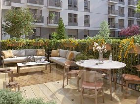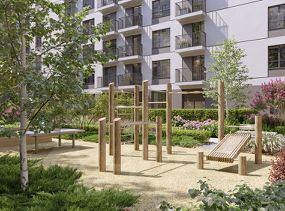 Камерные дворы квартала закрыты от машин. По нашим стандартам 70% их территории покрывает зелень. Деревья, кустарники и травы подобраны таким образом, чтобы в каждый сезон двор оставался красивым и имел свой цвет. Каждый двор разделён на зоны. В одной расположены детские площадки, в другой — места для спорта и тихого отдыха взрослых.