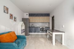 Выполнен качественный евроремонт: - на полу в прихожей и ванной кераморганит с технологией "теплый пол", в кухонной зоне пол керамогранит, в остальных частях - износостойкий ламинат; на стенах в ванной кварцвинил; во всей квартире натяжные потолки со встроенными светильниками, три точки доступа для интернета, приборы учета гвс, хвс, отопления, электроэнергии