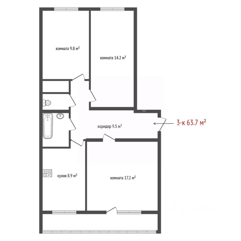 3 полноценные комнаты,