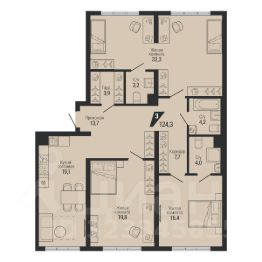 Общая площадь124,3 м²