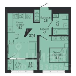 Общая площадь37,4 м²