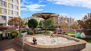 Двор без машин. Игровые площадки для детей разных возрастов, места отдыха и занятий спортом для взрослых не соседствуют с парковкой.