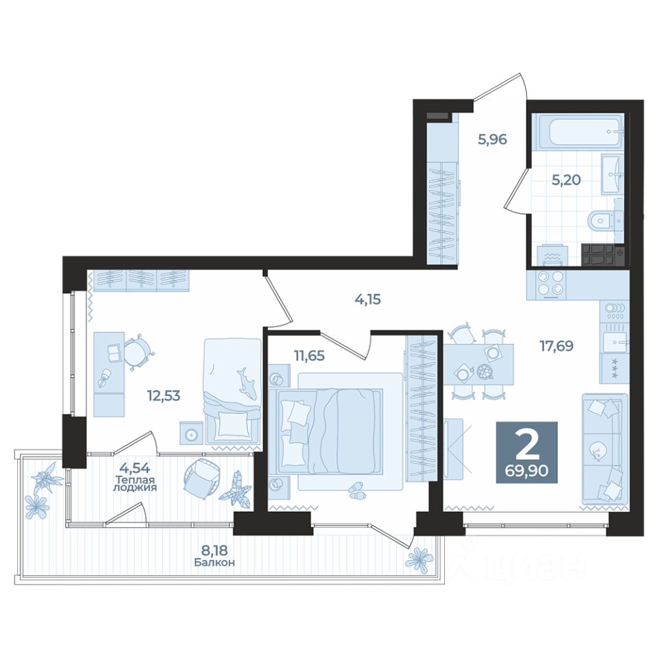Дом 3 Ввод в эксплуатацию  первая половина 2026 г. (возможен досрочный ввод). Класс дома: комфорт. Отделка: чистовая. Архитектурное решение: строгий фасад дома выполнен в глубоком синем цвете и дополнен выразительным элементом, напоминающим огромную линзу. Объем здания также формируют навесные балконы. В квартирах с такими балконами предусмотрены еще и теплые лоджии. Вид из окон: на городскую застройку, двор, школу и детский сад.